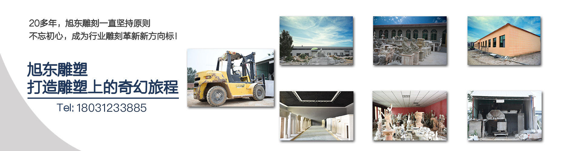 曲陽縣旭東雕刻有限公司制作出的作品時常流于國內(nèi)各個省區(qū)甚至國外,贏得廣大客戶信賴,公司地址位于河北省保定市曲陽縣羊平鎮(zhèn)經(jīng)濟開發(fā)區(qū), 歡迎各界熱愛雕刻的人員前來欣賞和購買。 公司主要從事石木雕刻、石板、壁爐、工藝品、不銹鋼、銅、鐵雕刻品的生產(chǎn)和銷售。 現(xiàn)已形成紀(jì)念碑雕刻、建筑雕刻、園林雕刻、西方人物雕刻、壁爐雕刻、動物雕刻、傳統(tǒng)雕刻、裝飾雕刻、不銹鋼及金屬雕刻、 石材制品及石板等十大系列,二十六個門類上萬個品種。